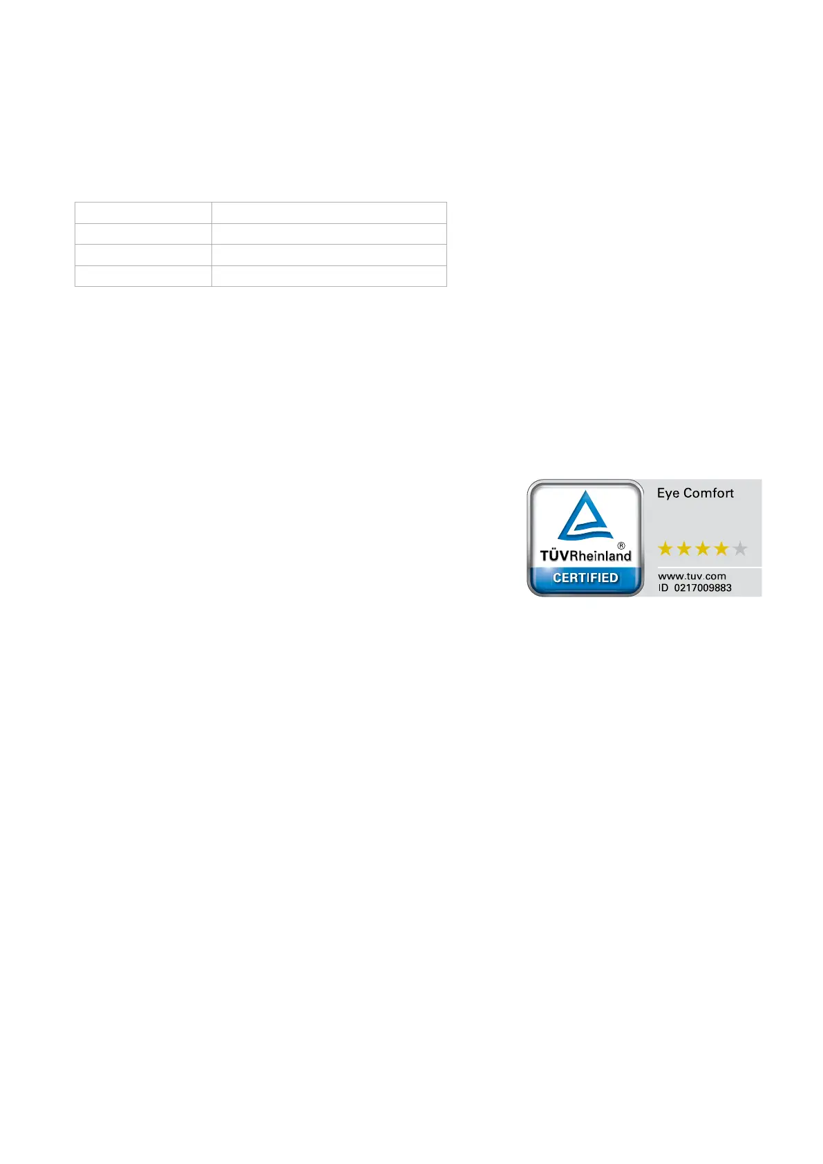 TÜV Rheinland Eye Comfort 3.0 certification with a 4-star rating.
