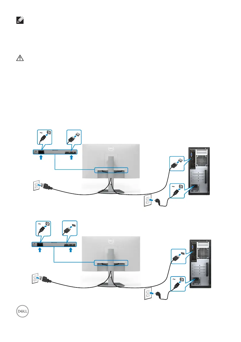 2. Connect the DisplayPort or HDMI cable from your monitor to thecomputer.