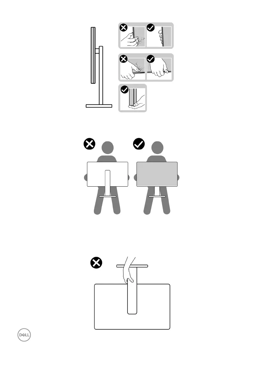 • When lifting or moving the monitor, ensure that the screen is facing away from