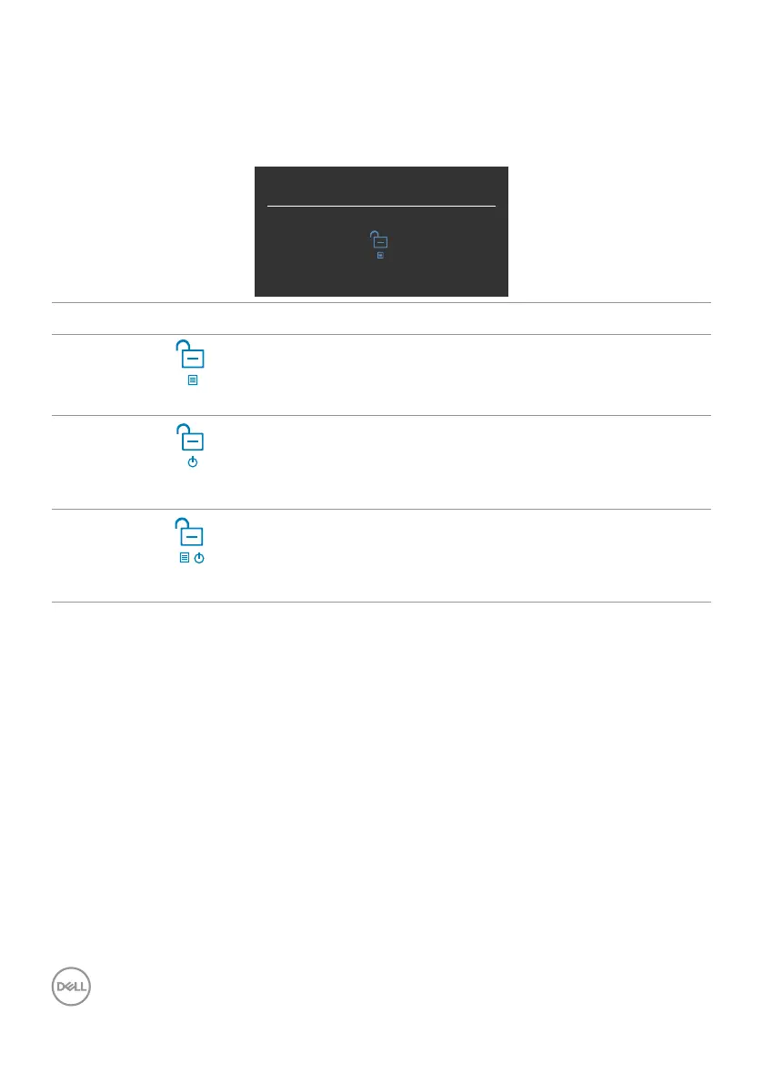 het scherm verschijnt. De volgende tabel beschrijft de opties voor het ontgrendelen