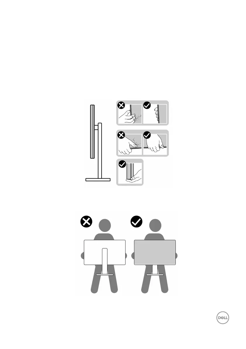 • When lifting or moving the monitor, ensure the screen is facing away from you