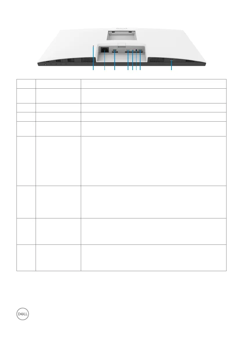 1 Security lock slot Secures the monitor with security cable lock (sold