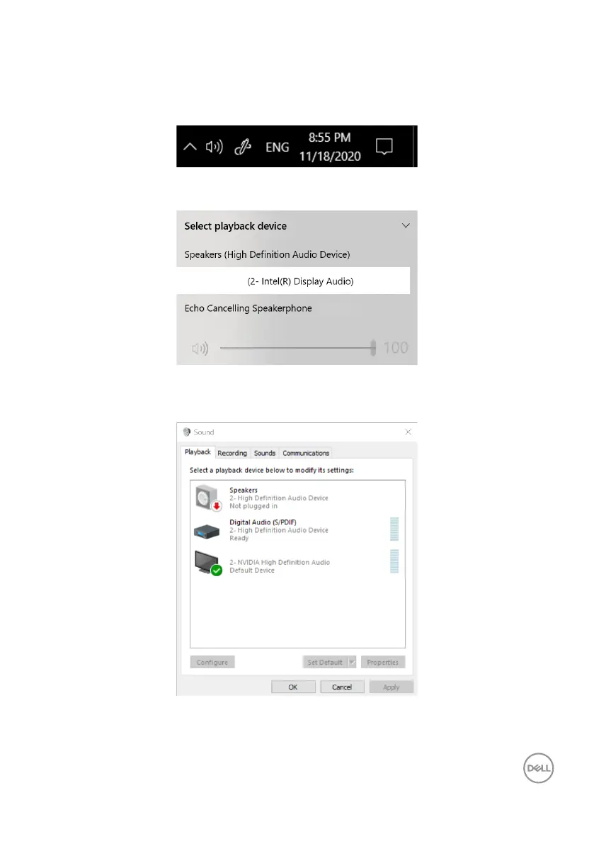 2. Click Playback devices to open the Sound dialog box. Click the playback