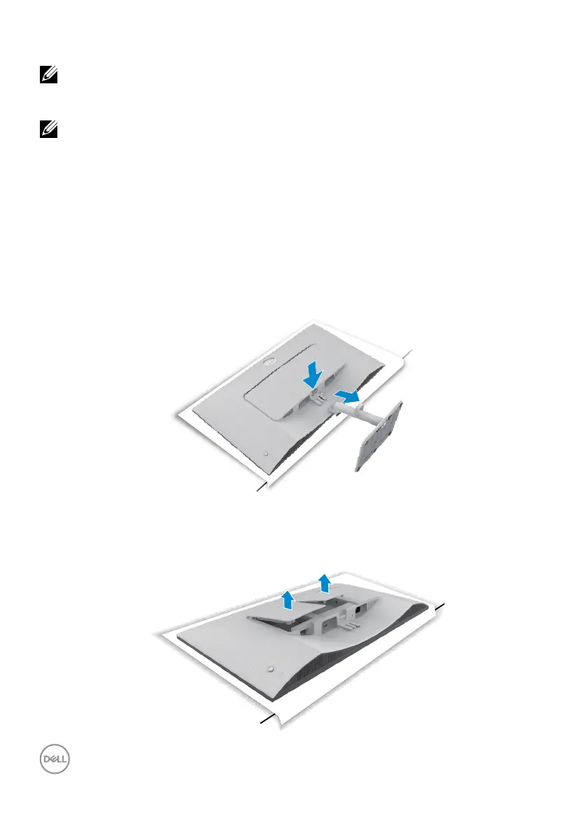 4. Terwijl u de ontgrendeling indrukt, schuift u de standaard van de monitor.