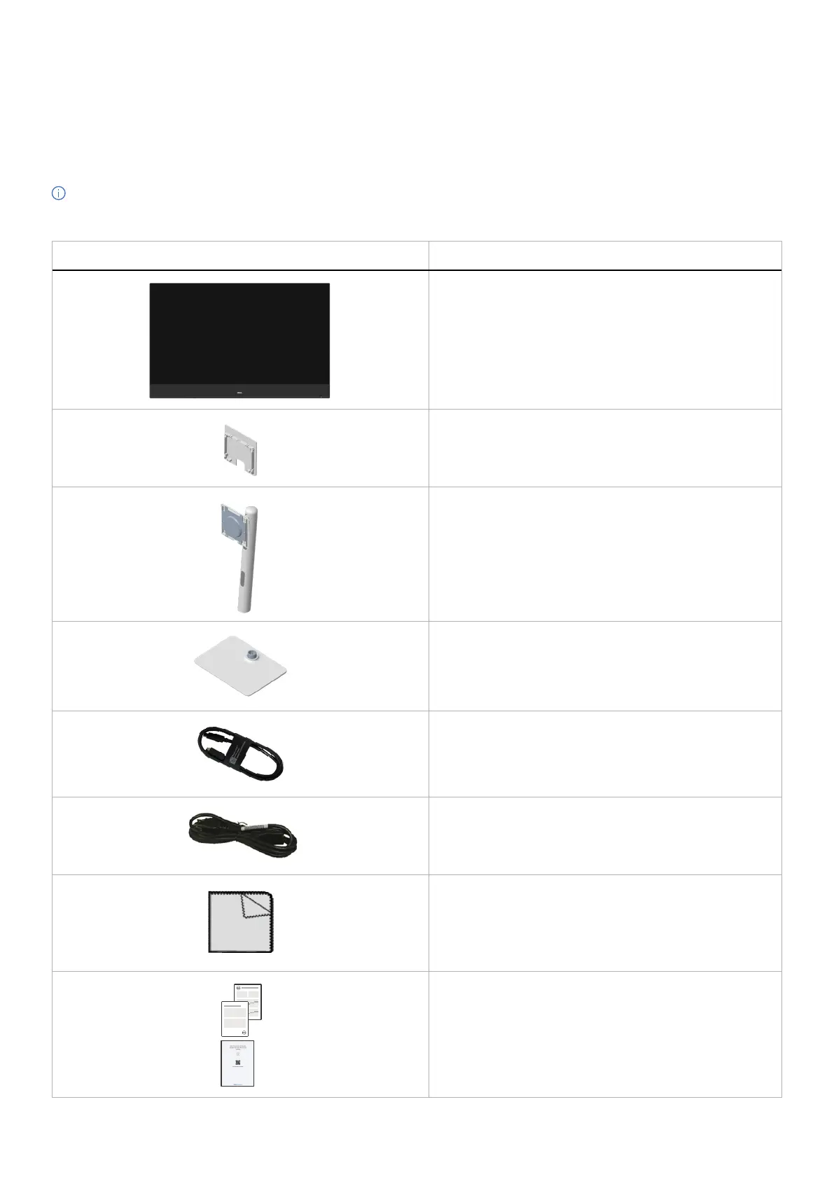 In de volgende tabel vindt u de lijst van onderdelen die met uw monitor worden meegeleverd. Neem contact op met Dell als er een