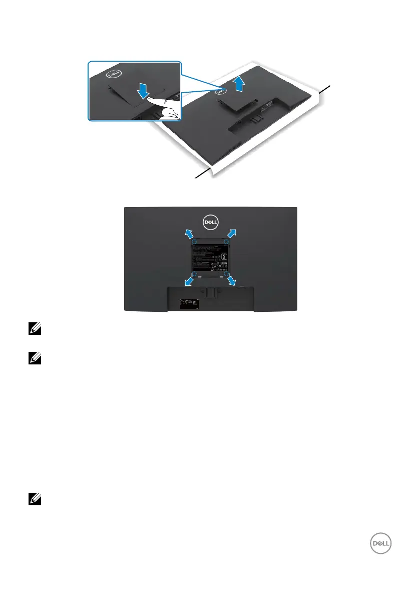 Press the dimple on the VESA cover to release it from the back of the display.