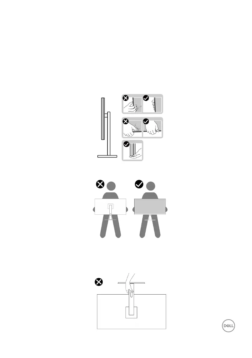 • When lifting or moving the monitor, ensure that the screen is facing away from