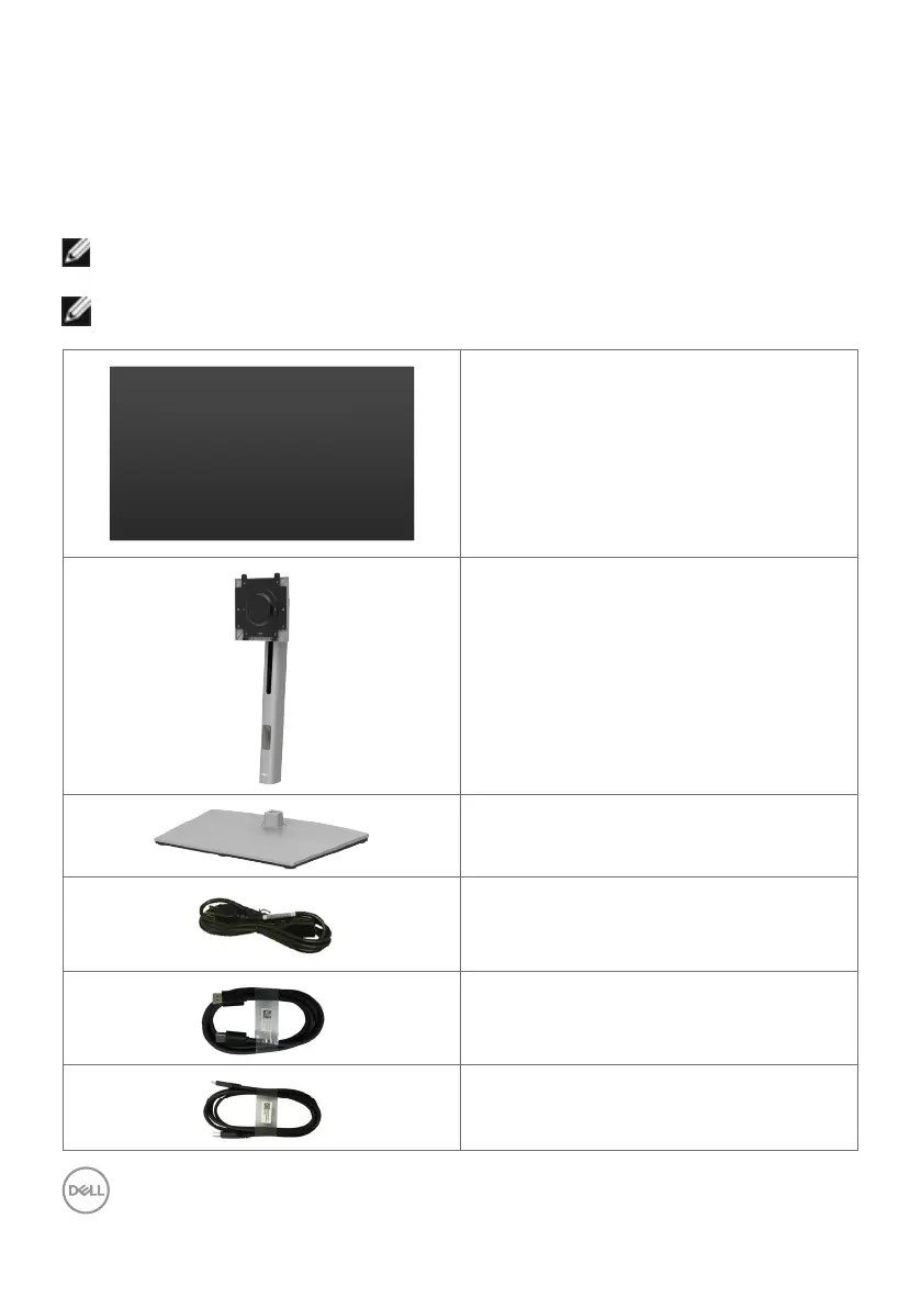 The following table provides the list of components that are shipped with your monitor.
