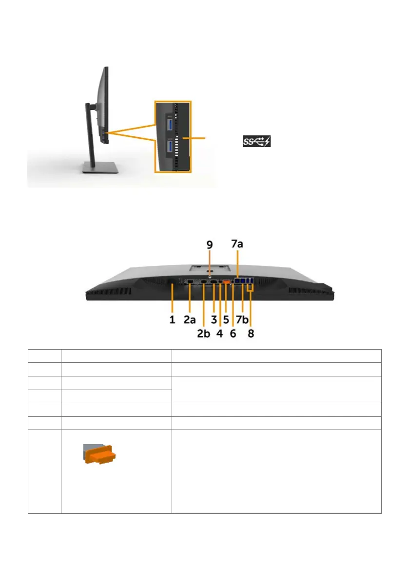 1 AC power connector To connect the monitor power cable.
