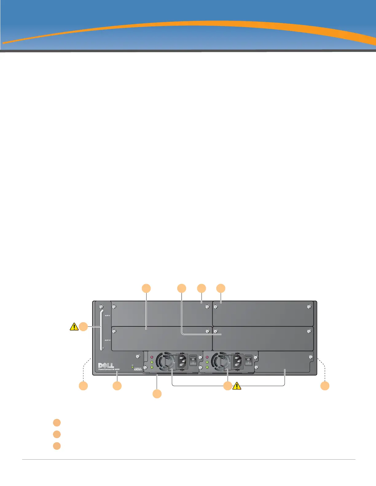 Slot 0: This slot is for the required Dell PowerConnect W-6000M3 Controller Module.