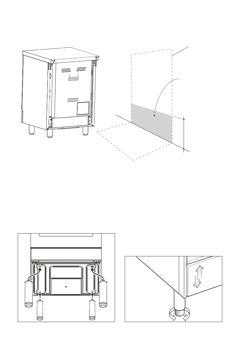 The cooker may be levelled by screwing the lower ends of the feet IN or OUT (g. 4).