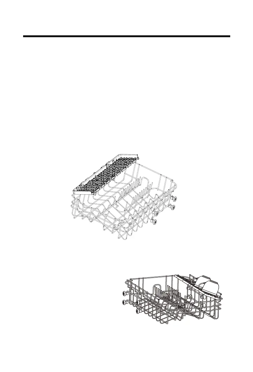 ● The upper rack may be adjusted to accommodate larger items. You can adjust the