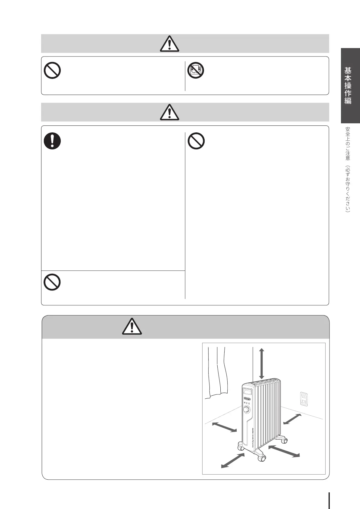 ※本体の上部は、燃えやすいものから1m以上の距離を取ってくだ