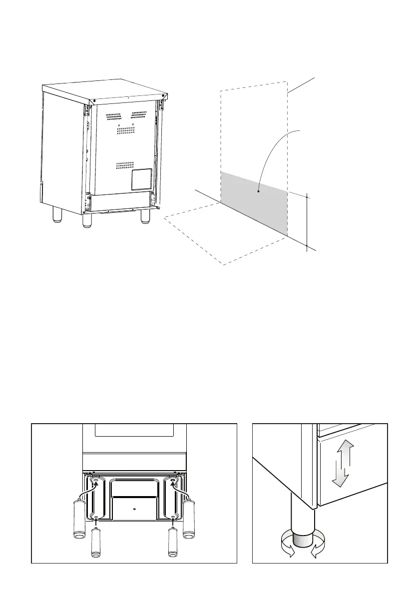 The cooker may be levelled by screwing the lower ends of the feet IN or OUT (g. 4).
