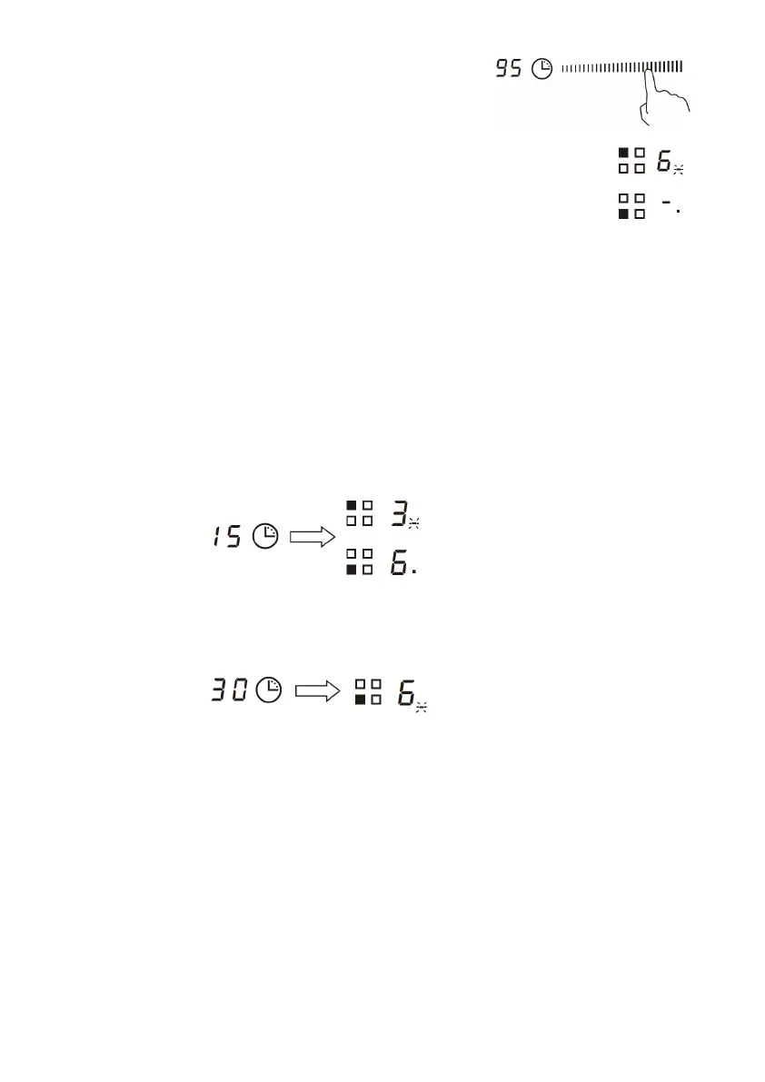 delle zone di cottura interessate. Il display del timer visualizza il timer dei minuti.