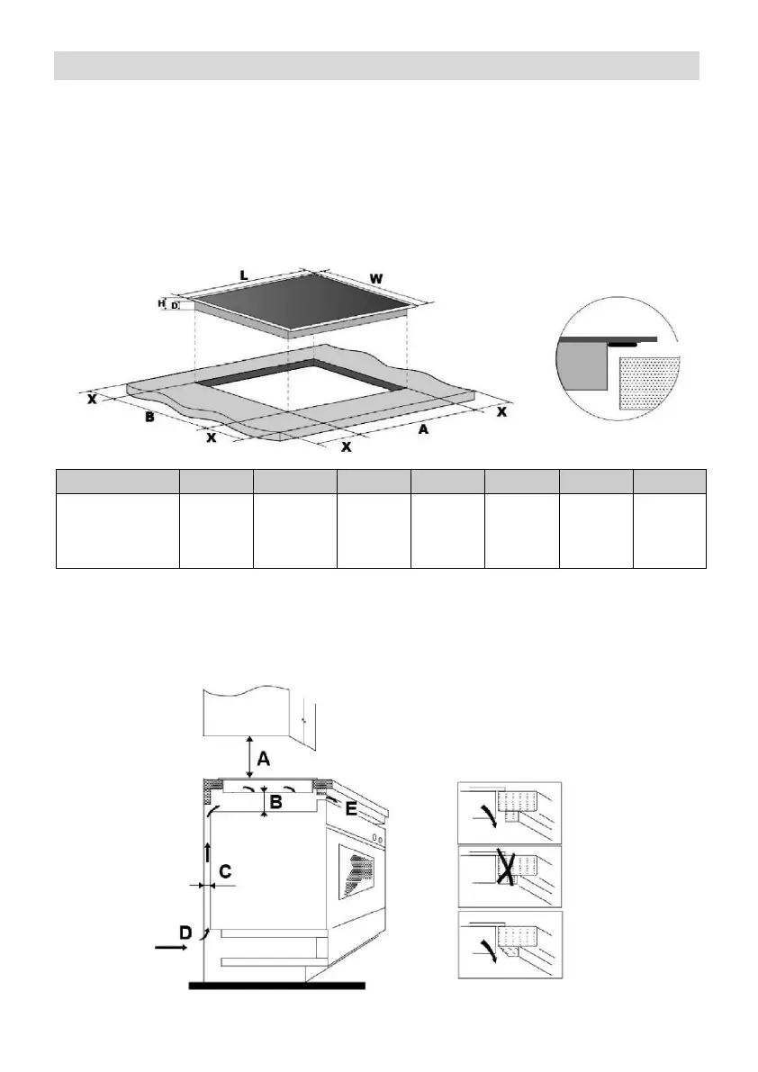Nota: la distanza di sicurezza tra il piano cottura e i pensili sovrastanti deve essere
