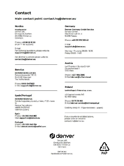 Bekijk gratis de handleiding van Denver PQCW-10010, stel vragen en lees de antwoorden op veelvoorkomende problemen, of gebruik onze assistent om sneller informatie in de handleiding te vinden of uitleg te krijgen over specifieke functies.