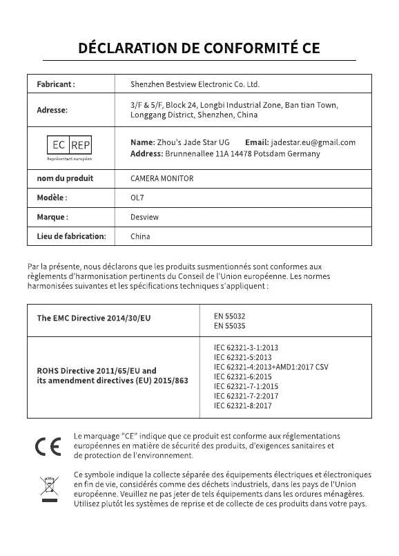 Bekijk gratis de handleiding van Desview OL7, stel vragen en lees de antwoorden op veelvoorkomende problemen, of gebruik onze assistent om sneller informatie in de handleiding te vinden of uitleg te krijgen over specifieke functies.