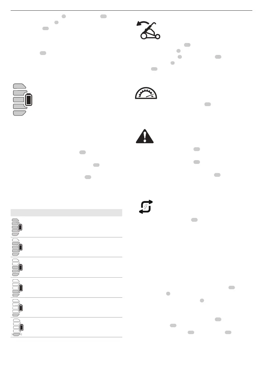 Gressklipperen er utstyrt med en indikator for ladenivå.