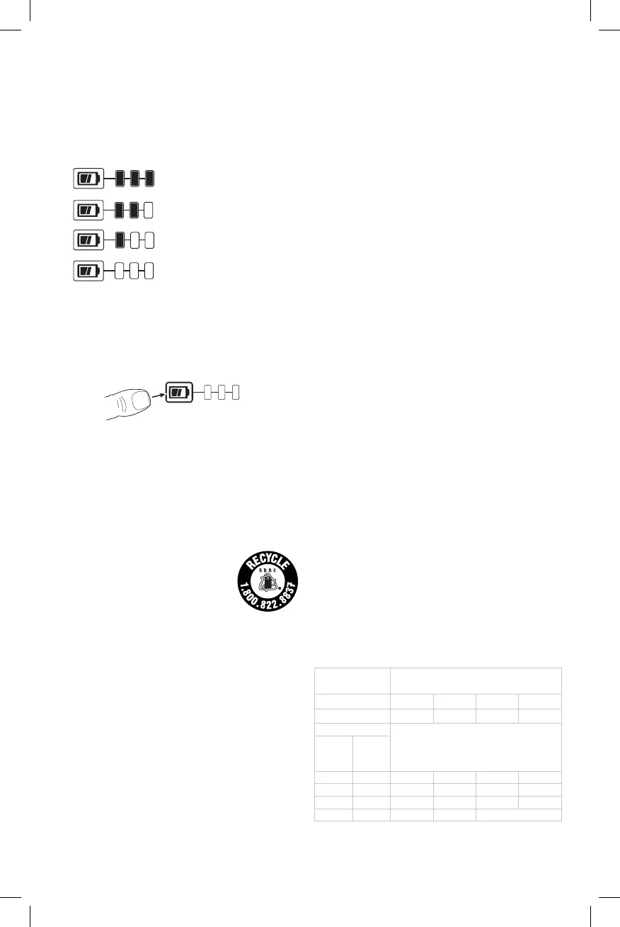 illuminate designating the level of charge left. When the