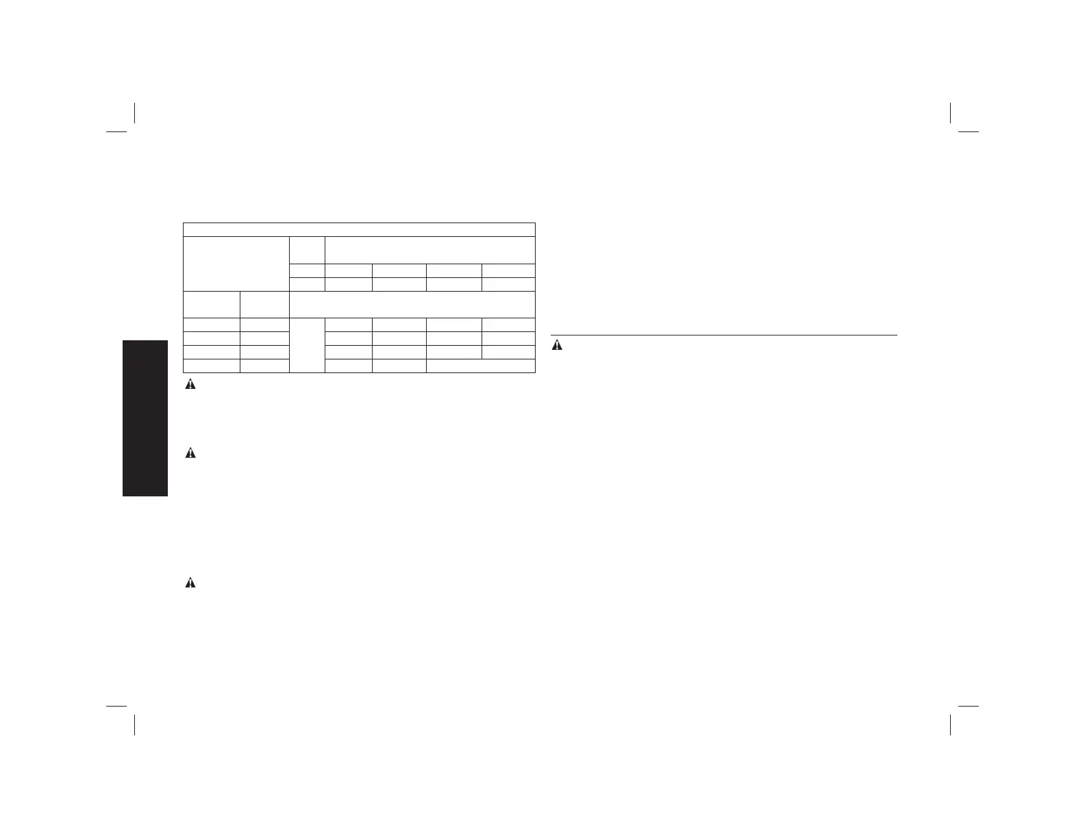 240 V 15,2 (50) 30,5 (100) 61,0 (200) 91,4 (300)