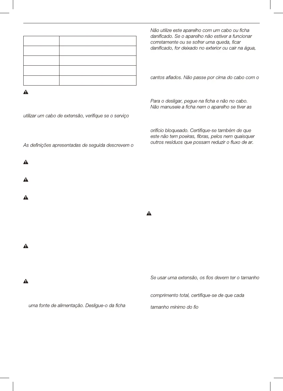 ATENÇÃO: Este aparelho não deve ser utilizado
