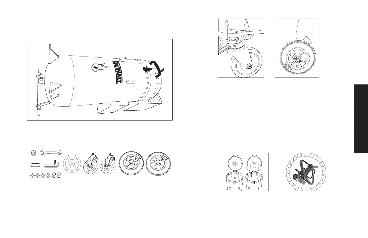 5. Placer l’unité sur ses roues et pieds. Déverrouiller le couvercle