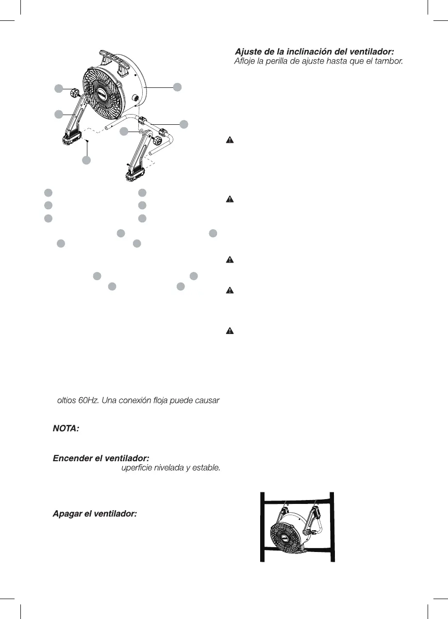 el objeto del que cuelga. No cuelgue el ventilador