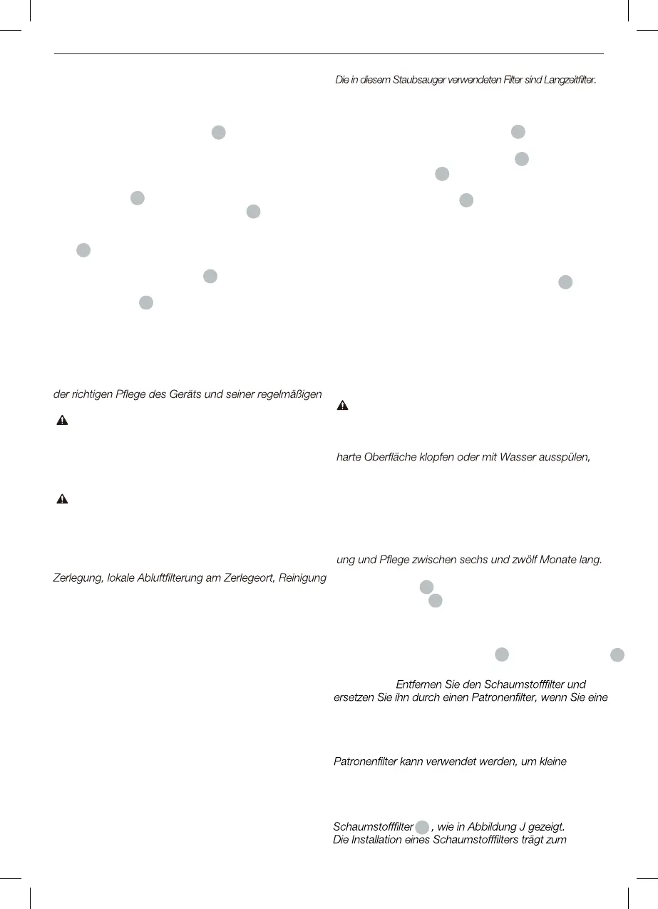 WARNUNG: Zur Filterreinigung niemals Druckluft