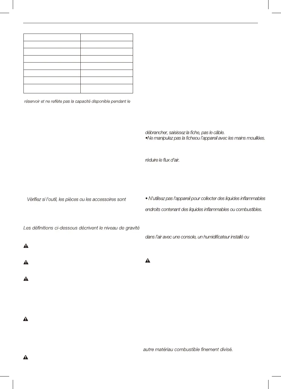 • N’utilisez pas pour aspirer des matières dangereuses, toxiques