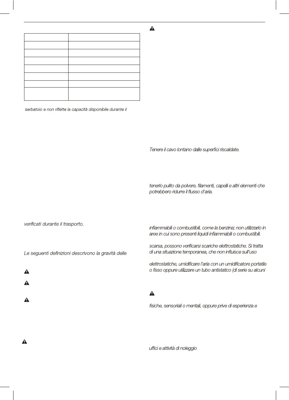 • Non utilizzare l'apparecchio per raccogliere liquidi