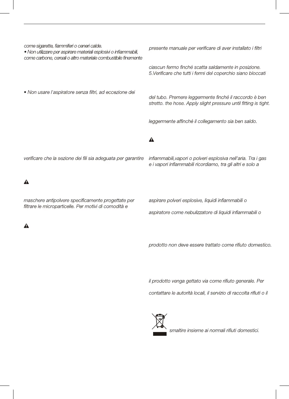 •Non raccogliere mai liquidi esplosivi (come benzina, gasolio,