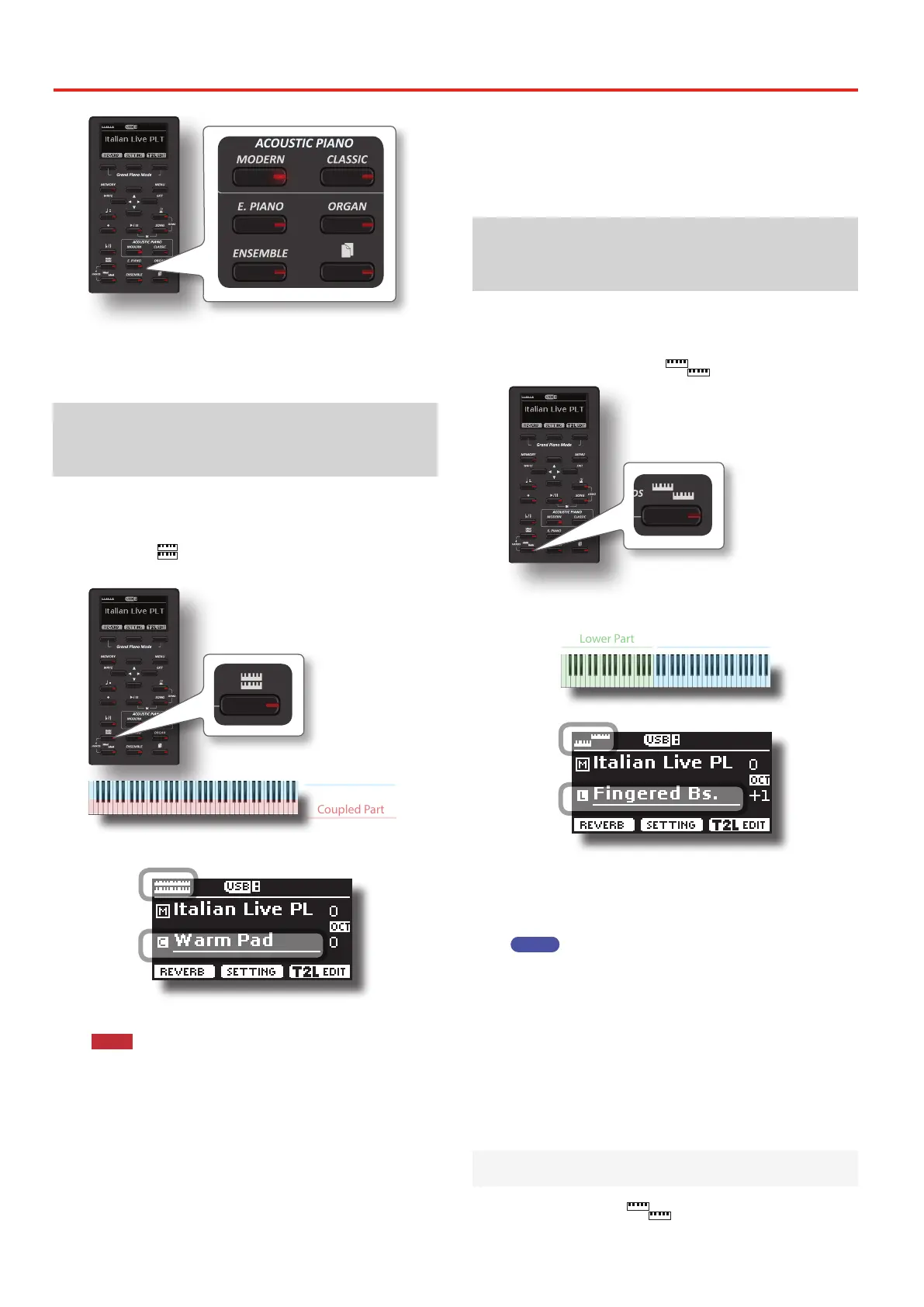 1. Press the [ ] button to add a second tone (Coupled