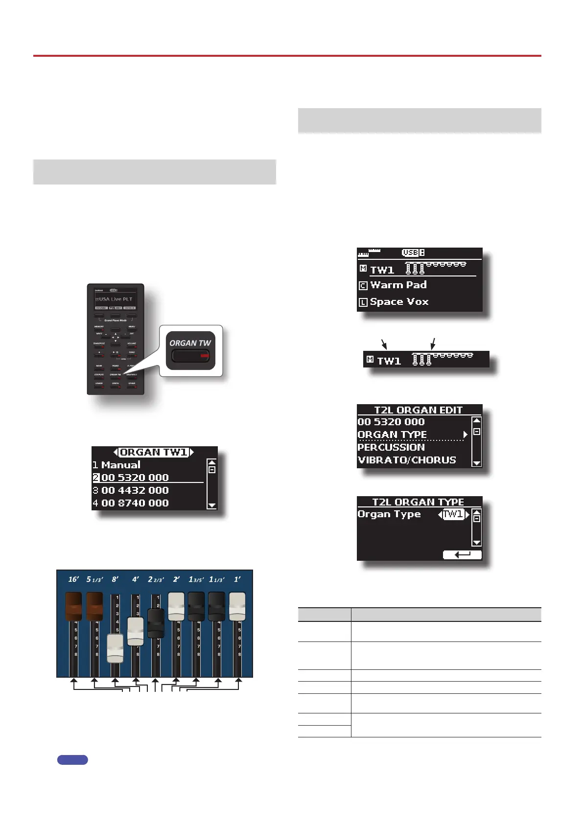 characteristics of both tonewheel and transistor types organ: TW1, TW2,