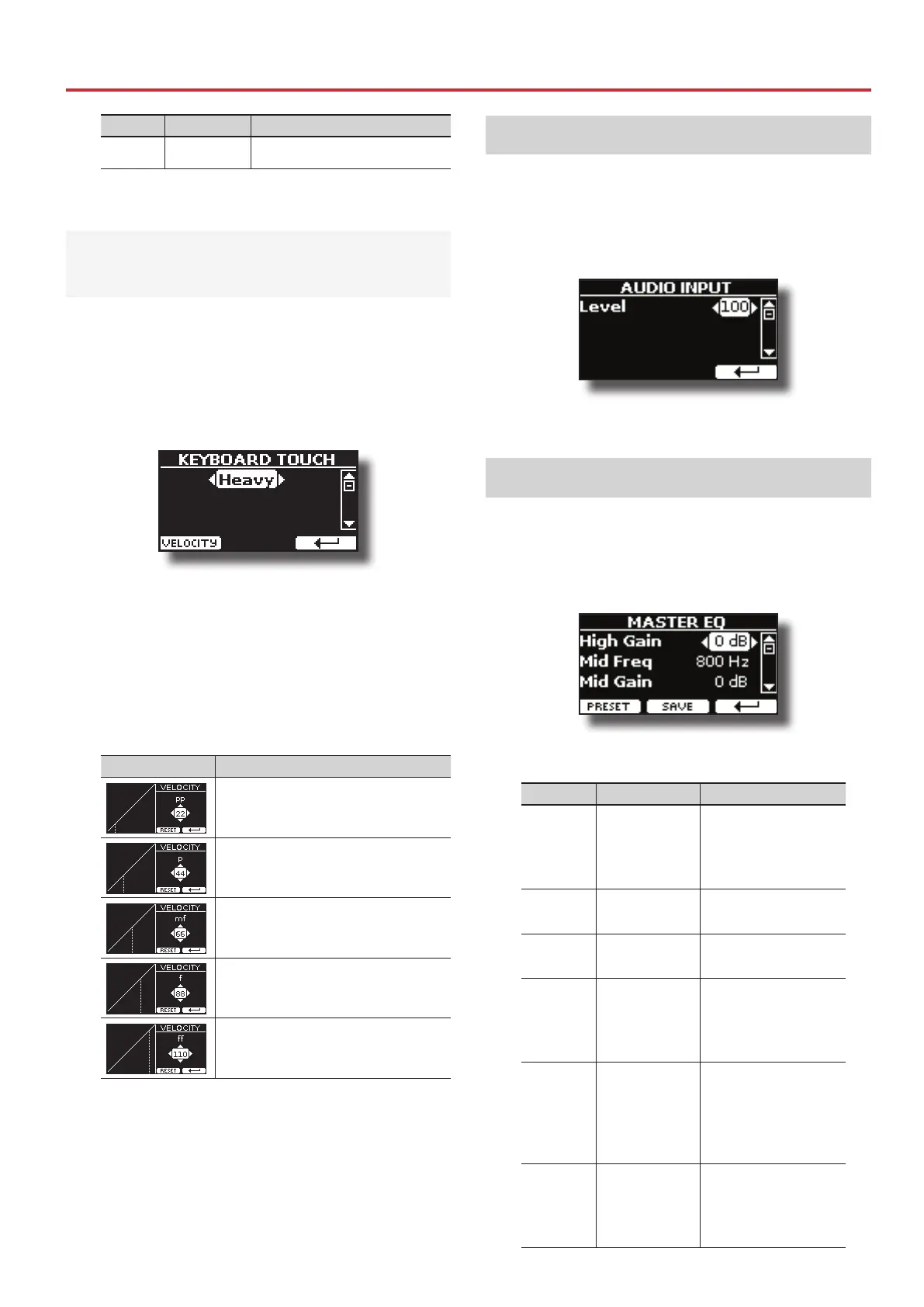 [*] This parameter can only be edited if the 'Keyboard Touch' parameter is set