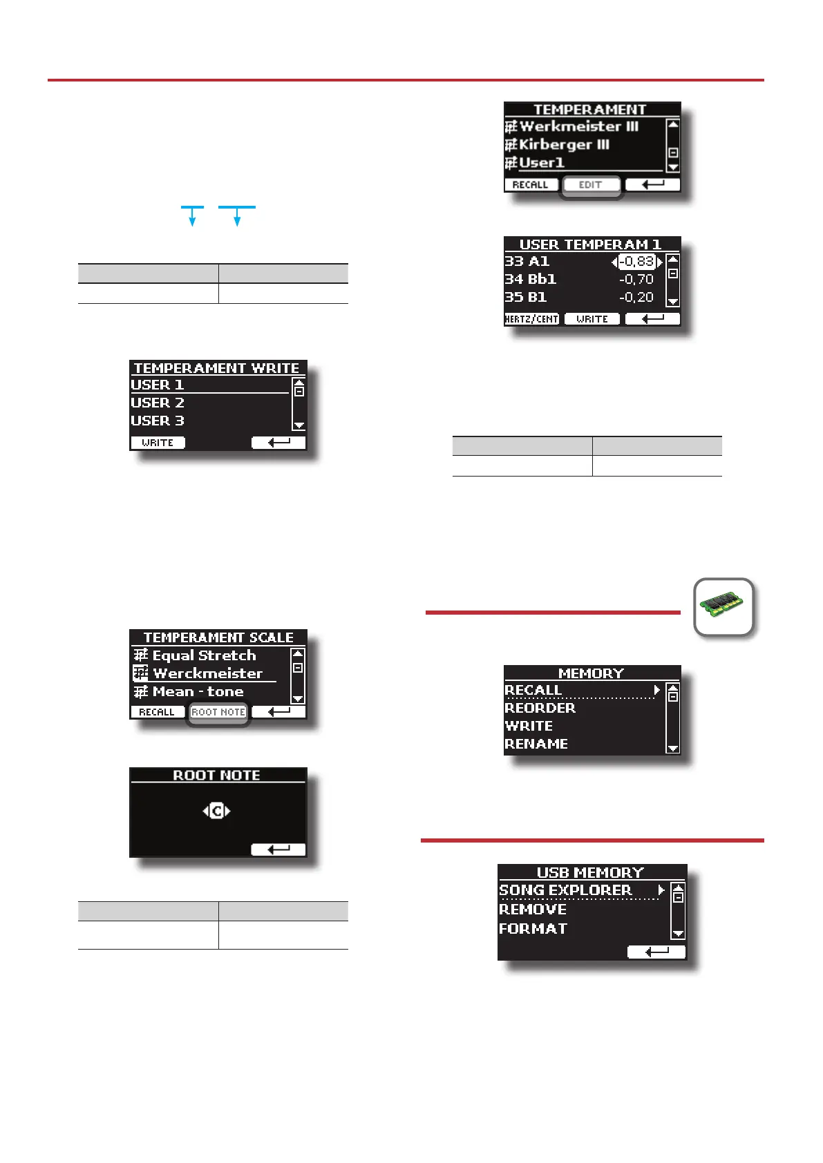 3. Use the [][] buttons to modify the tuning of the selected note.