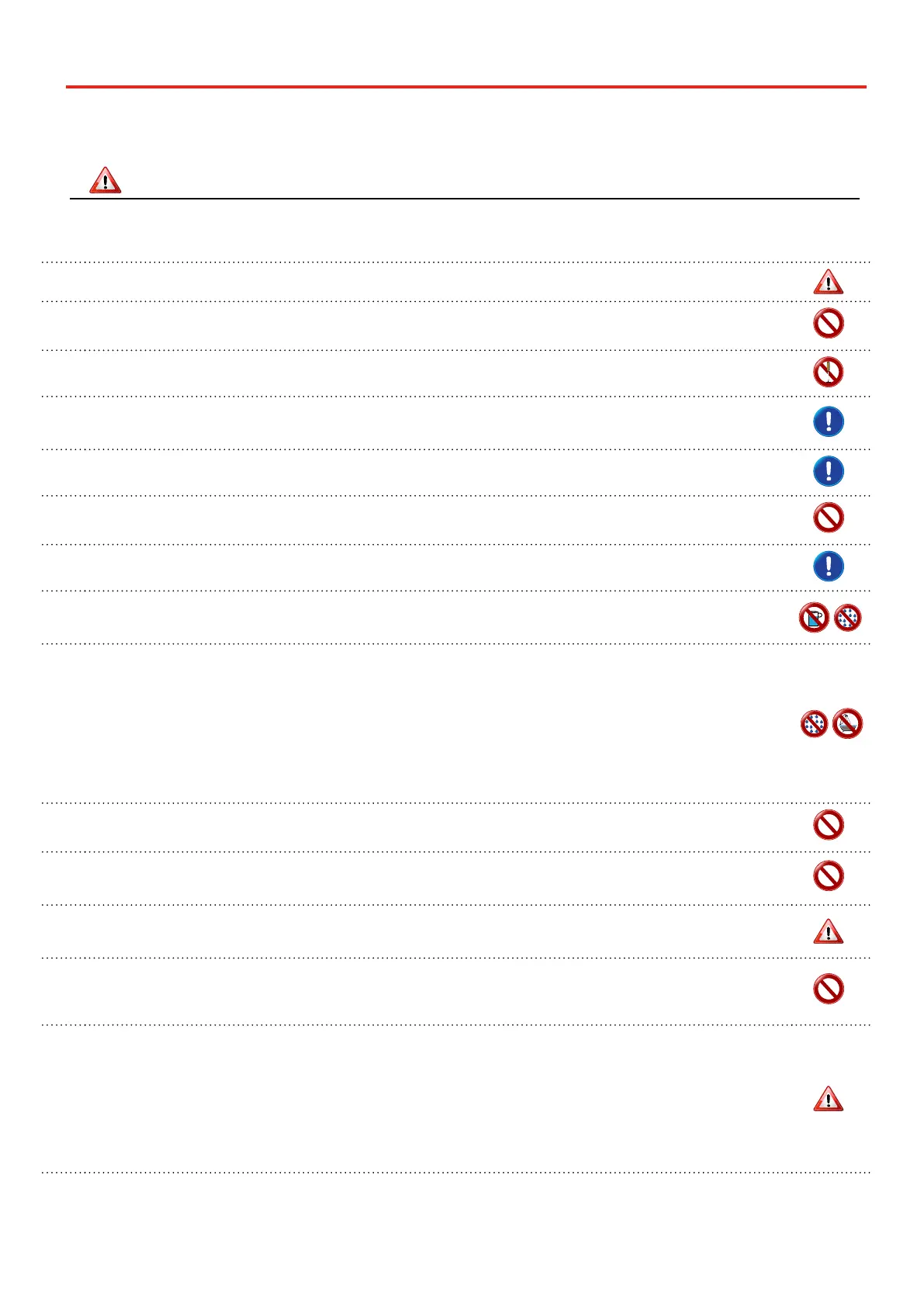 Do not place object lled with liquid (glass of water on this product. Never allow foreign objects (e.g., ammable objects, coins, wires) or liquids (e.g.,