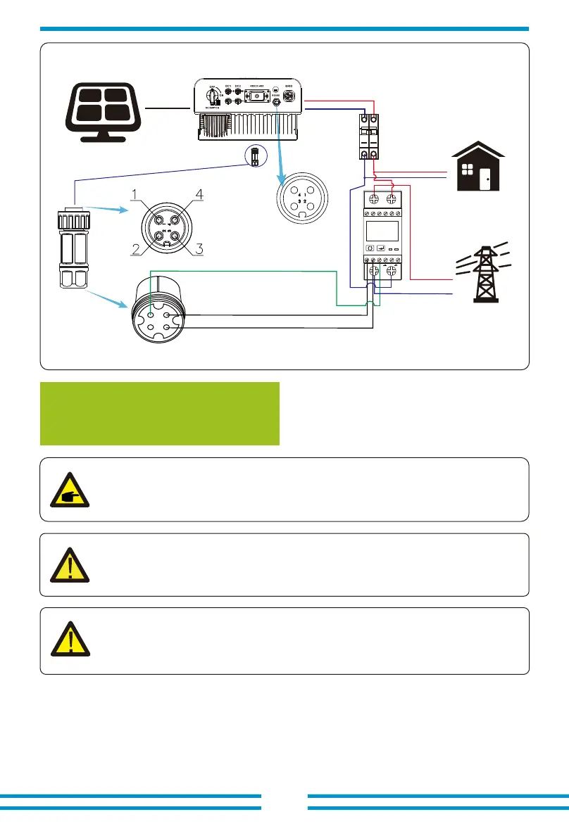 Ensuring grid input cables connect 1&3 port of energy meter, and inverter AC output cables