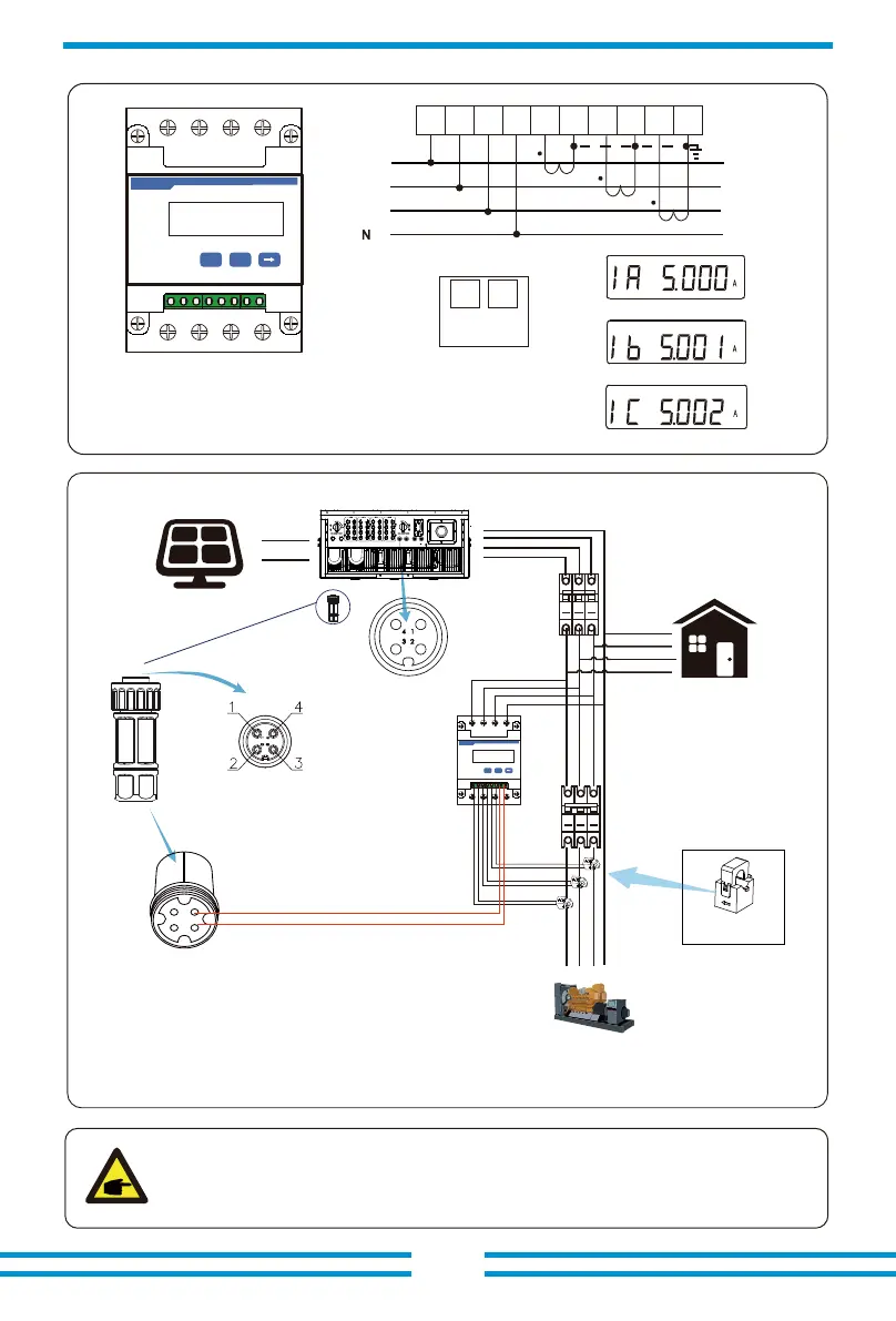 AC output cables connect 3/6/9/10 port of energy meter when connecting.