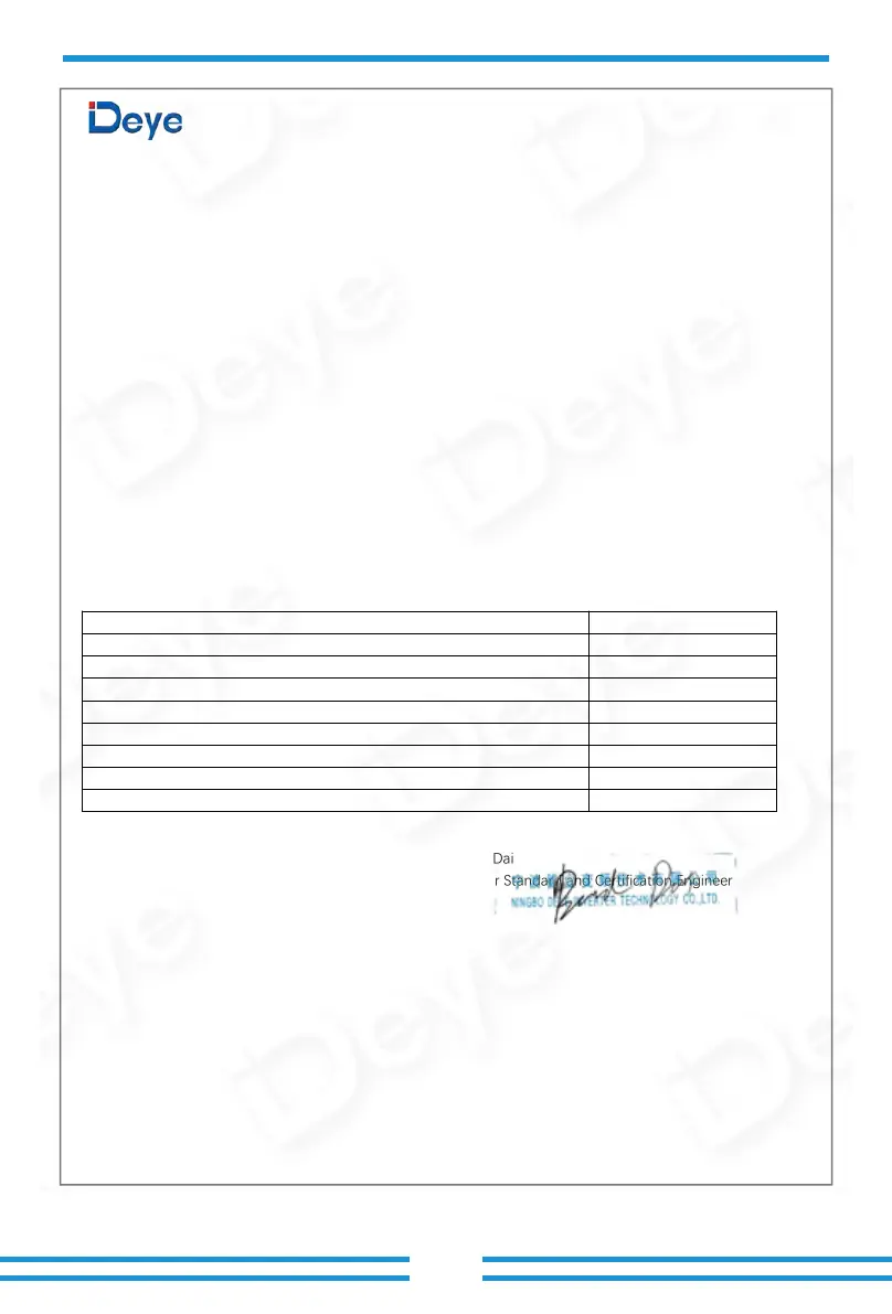 Name and address of the manufacturer: Ningbo Deye Inverter Technology Co., L td.