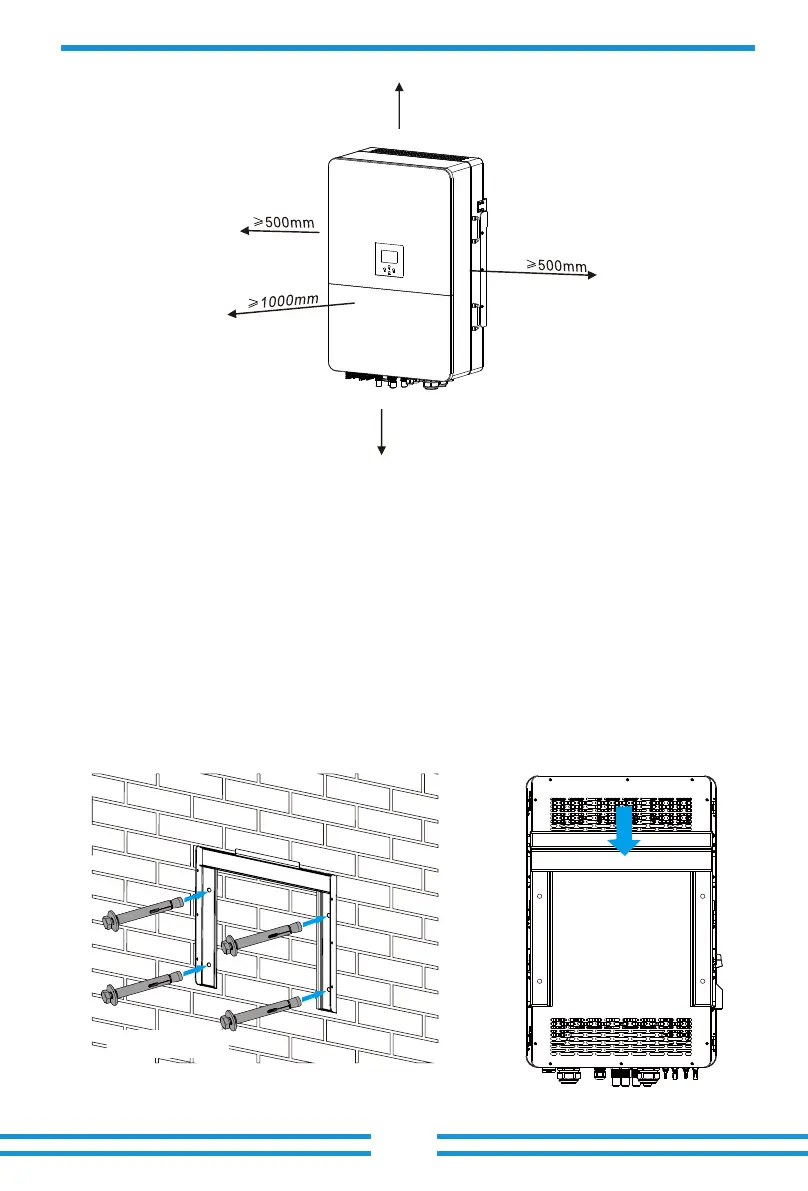 For a proper ventilation of the inverter and avoid overheating, allow a clearance of approximately