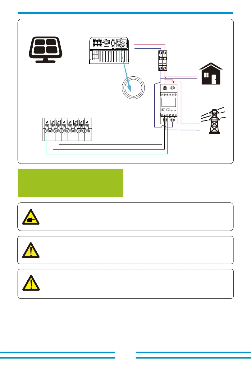 Ensuring grid input cables connect 1&3 port of energy meter, and inverter AC output cables