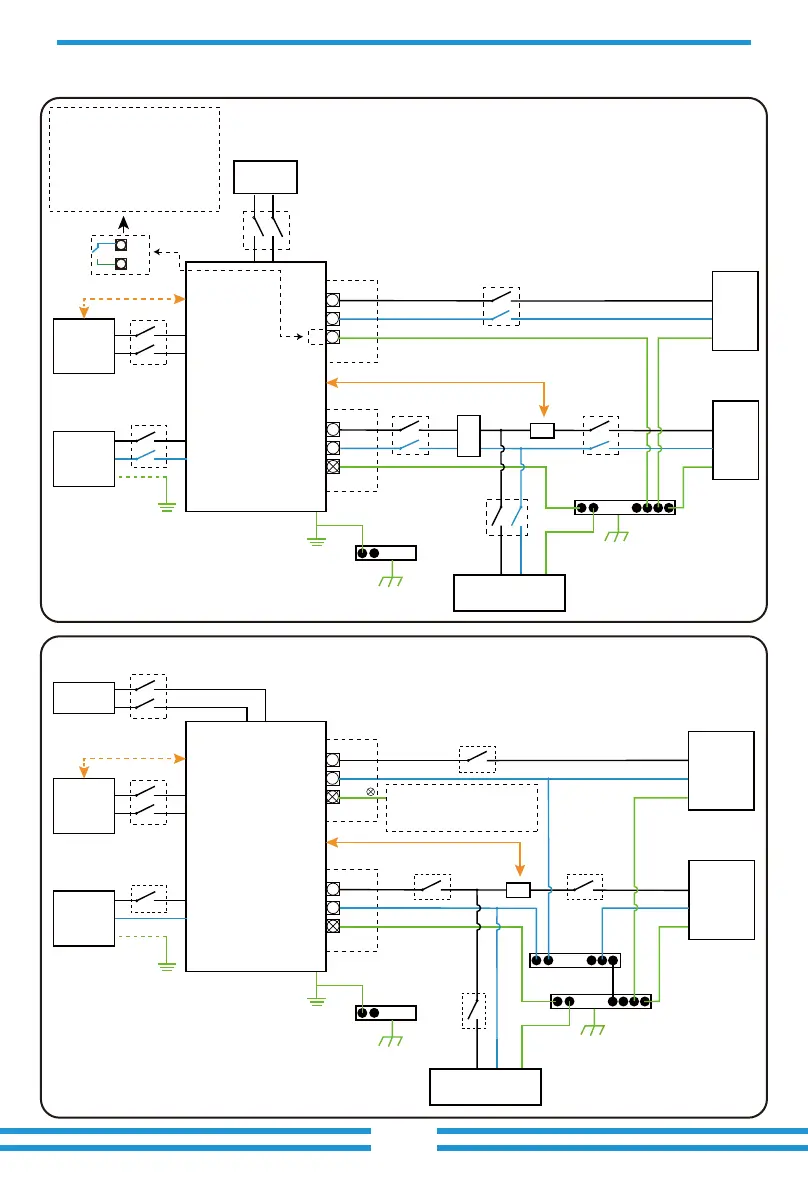 Note: The back-up PE line and earthing bar must be grounded properly and