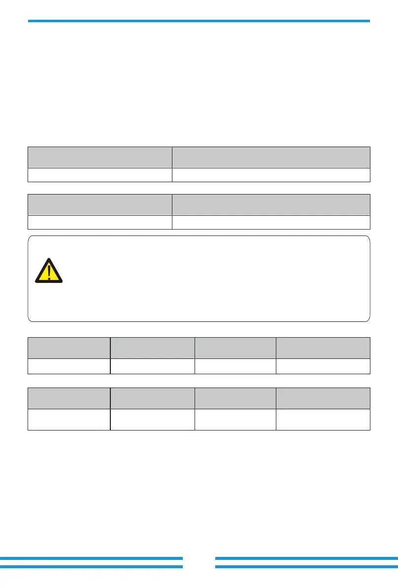 the recommended values in the following tables according to local regulations in each country.