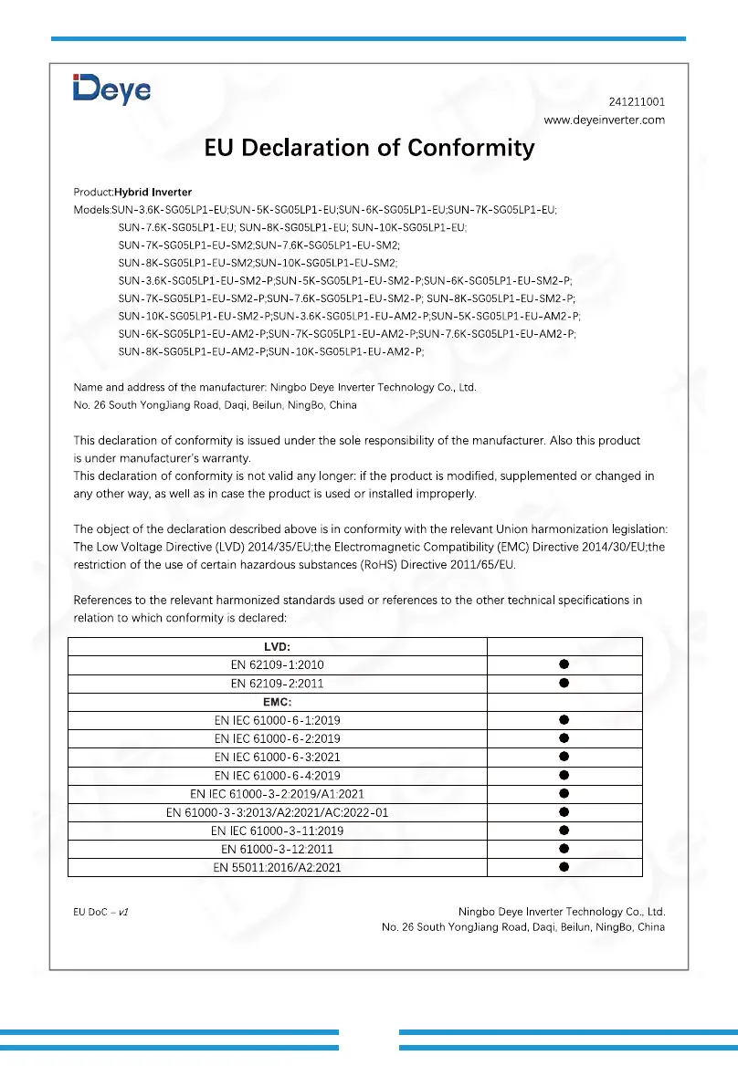 Bekijk gratis de handleiding van Deye SUN-7K-SG05LP1-EU-SM2, stel vragen en lees de antwoorden op veelvoorkomende problemen, of gebruik onze assistent om sneller informatie in de handleiding te vinden of uitleg te krijgen over specifieke functies.