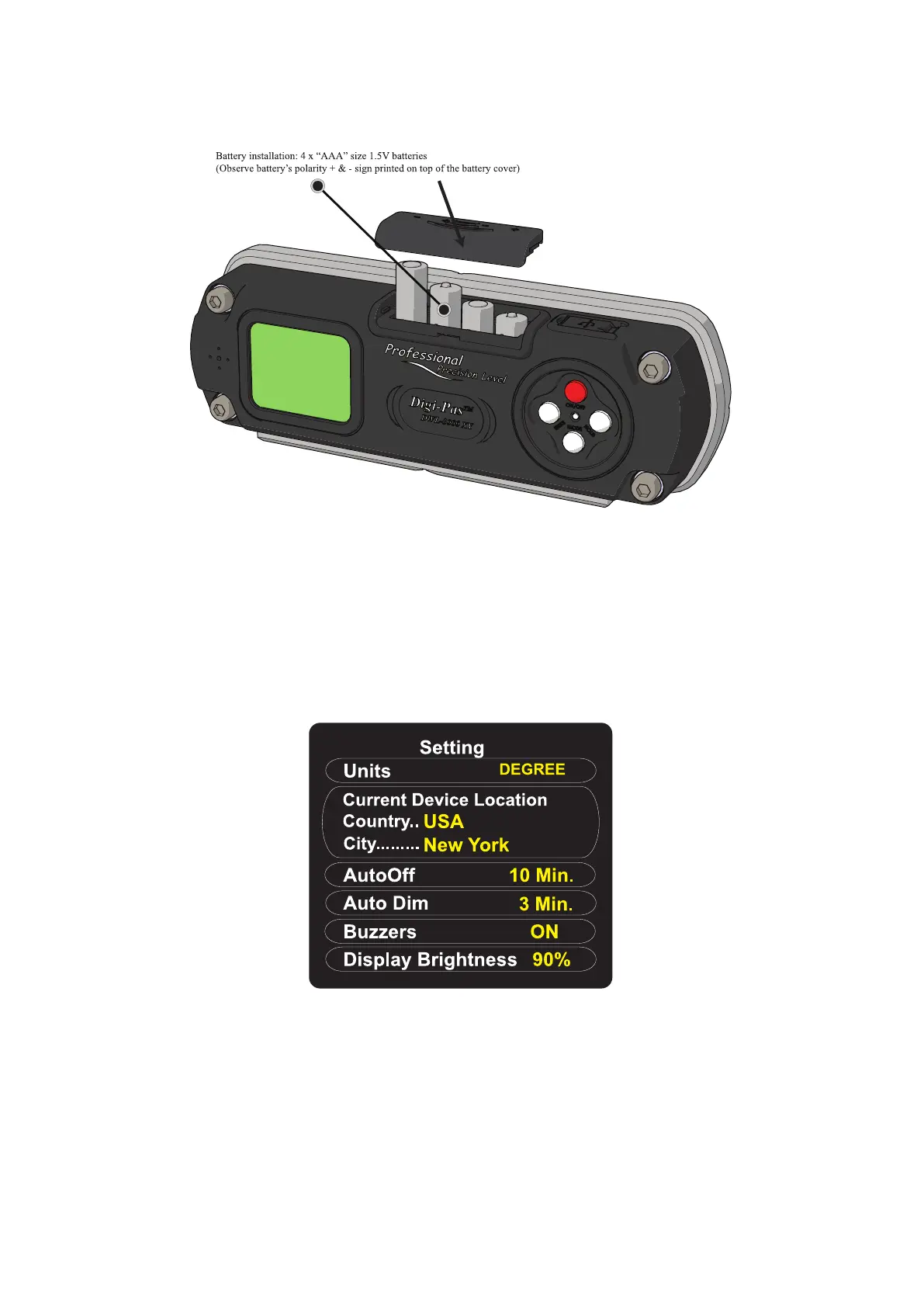 2. Initial Setup screen pops up. Press ON/OFF button to scroll up or MODE button to