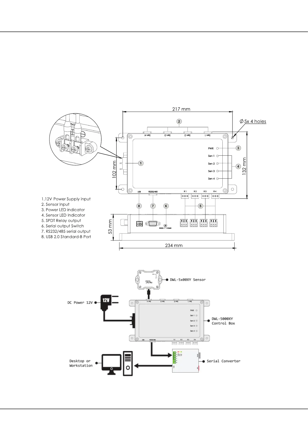 Figure 10. Diagram overview of serial connection through control box using and ES-U-3001-M serial converter