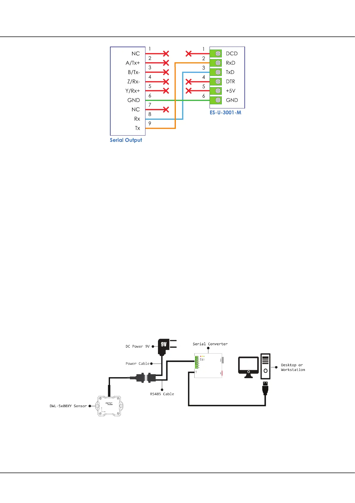 Figure 18. Diagram for Direct Serial connection without control box using custom cable and ES-U-3001-M converter