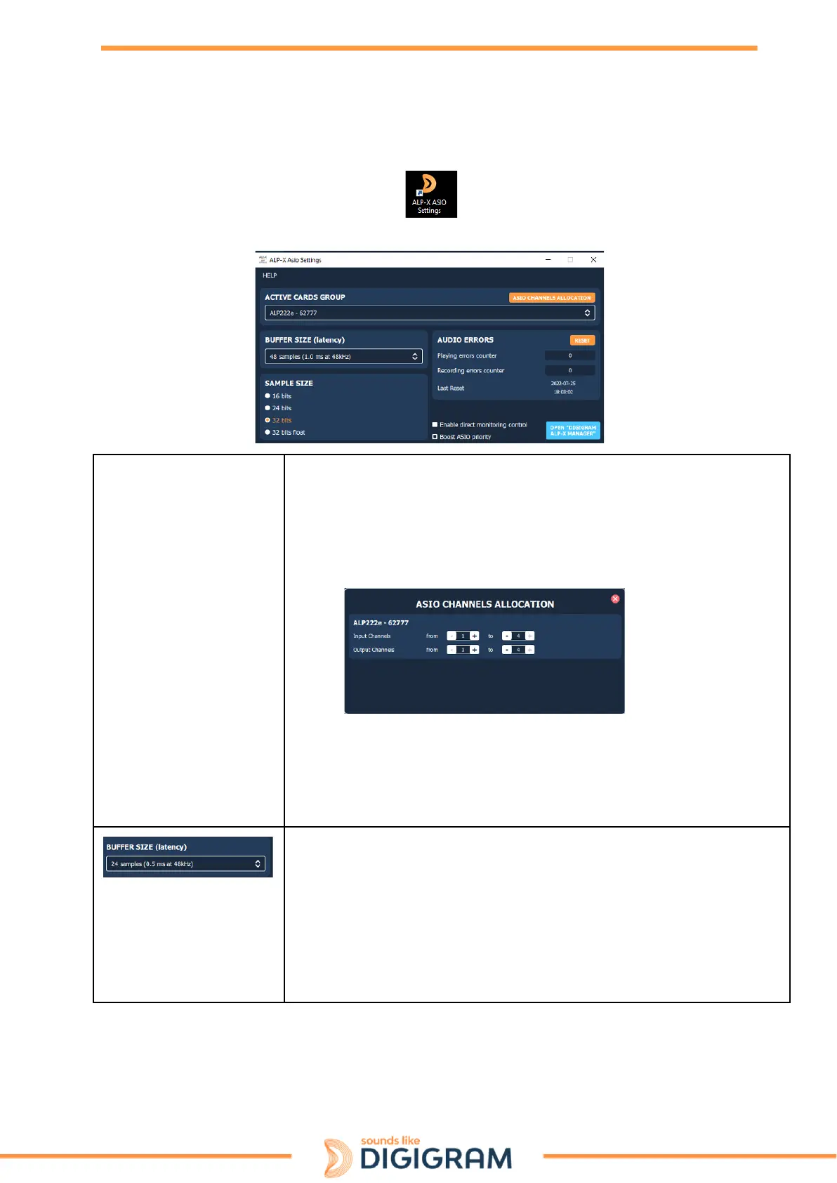 This section is used to select the size of audio buffers used by the ASIO