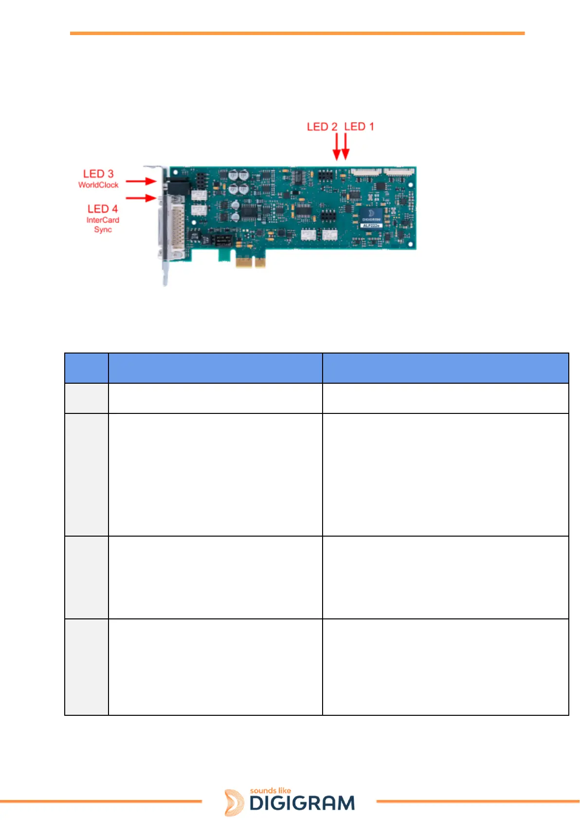 The ALP card has four green LED: 2 LED on the PCB (only visible when the PC is open) and two LED on